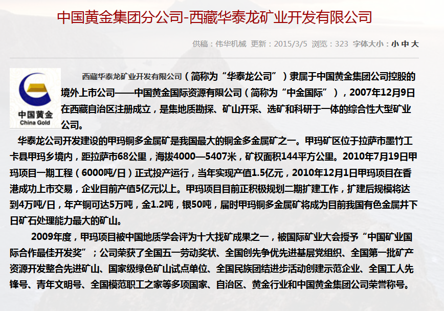 • 合作單位:中國(guó)黃金集團(tuán)分公司-西藏華泰龍礦業(yè)開(kāi)